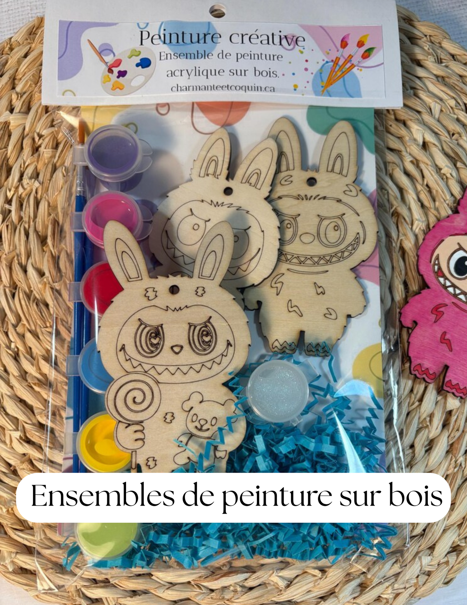 Ensemble créatif peinture acrylique sur bois pour enfants thème Labubu