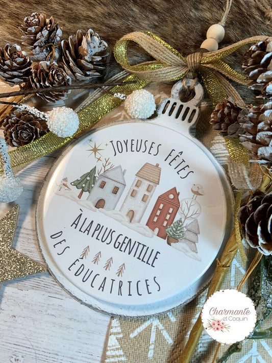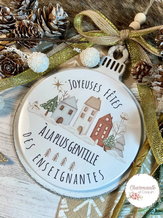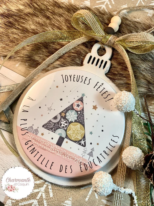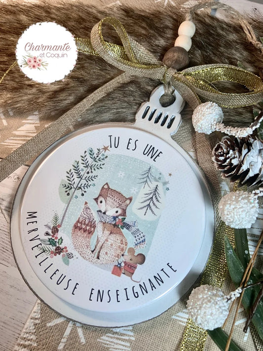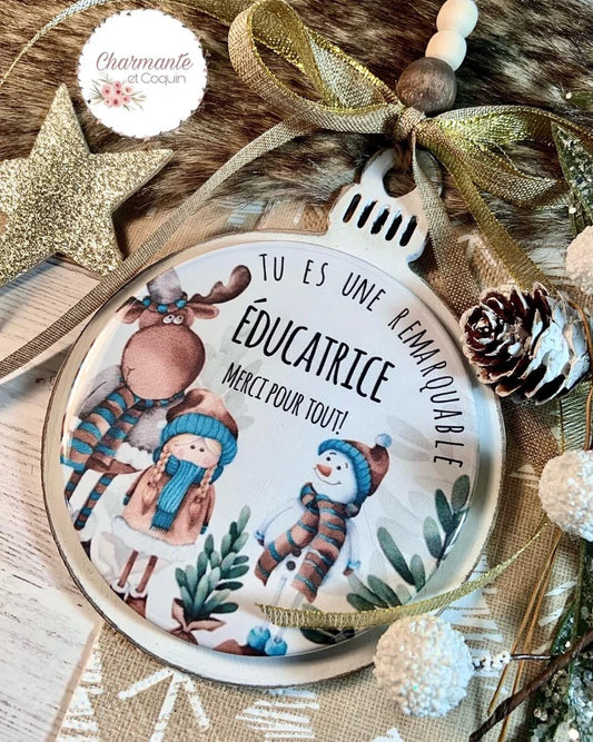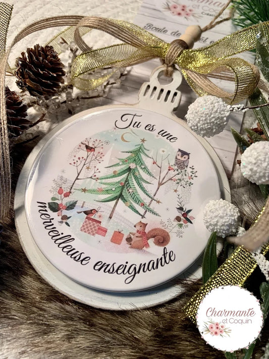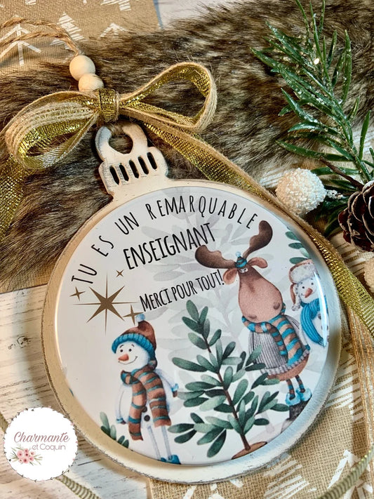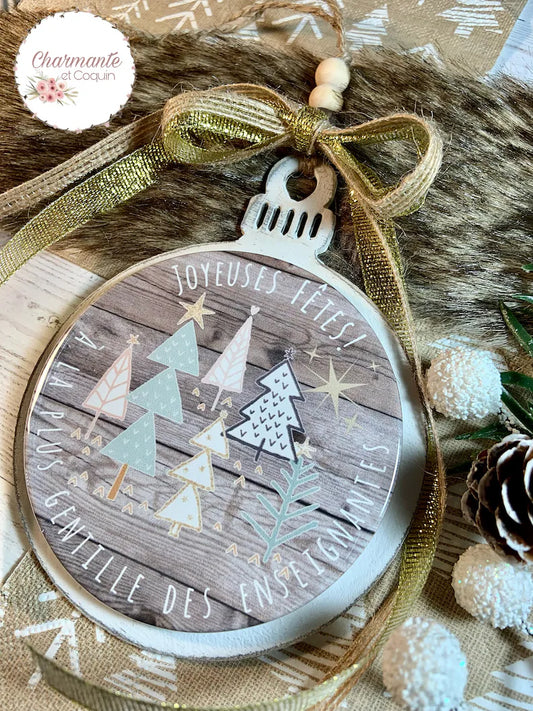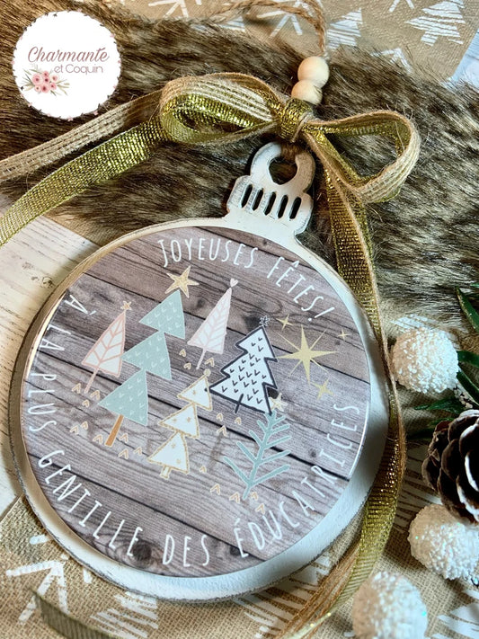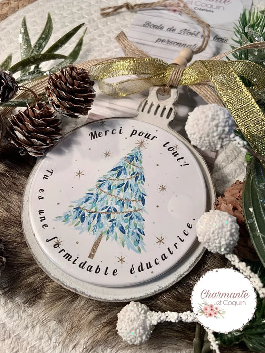 Boule de Noël en bois personnalisée de style rustique chic, cadeau pour éducatrice