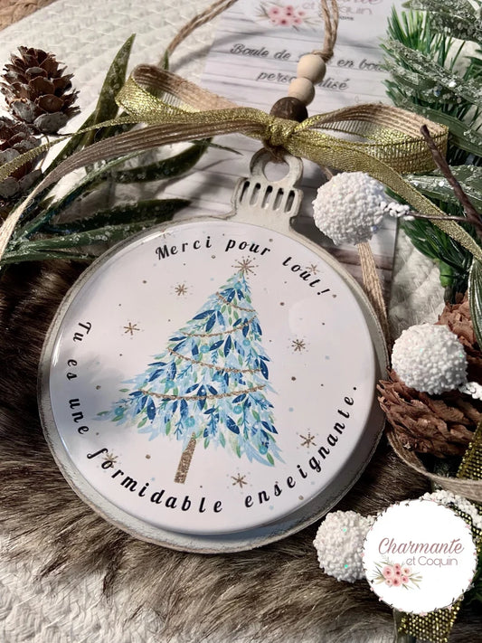 Boule de Noël en bois personnalisée de style rustique chic, cadeau pour enseignante