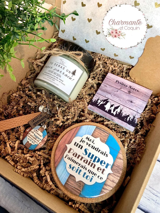 Charmante boîte cadeaux personnalisée cadeau pour une demande parrain.