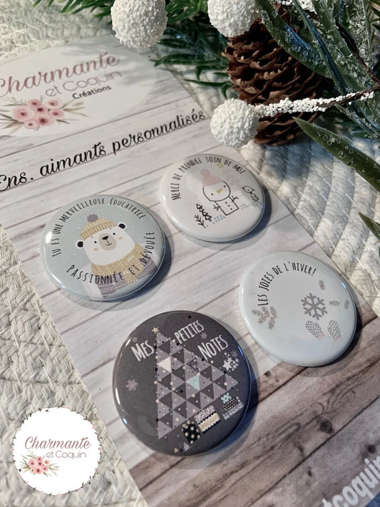 Ensemble de 4 aimants personnalisés , cadeau pour éducatrice.