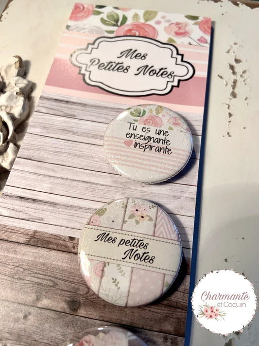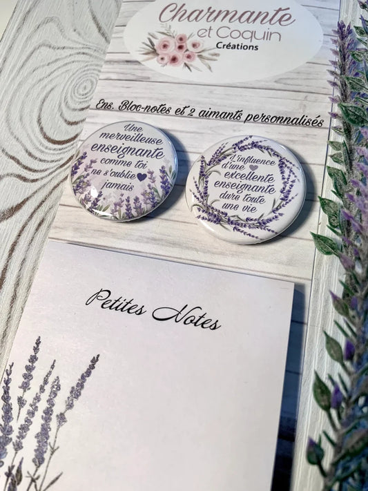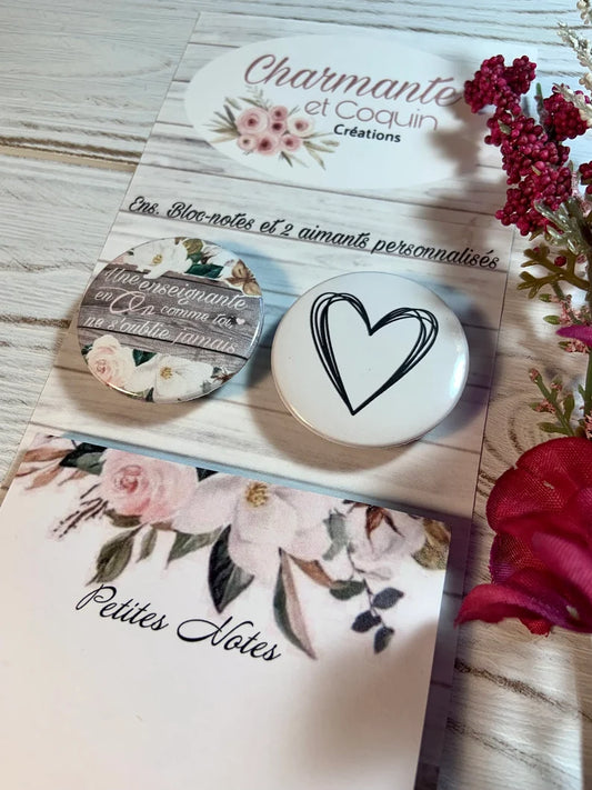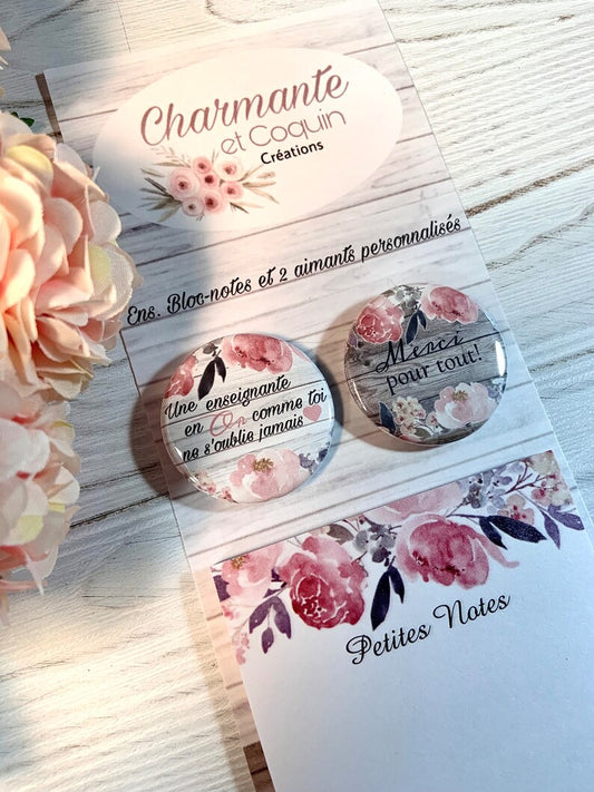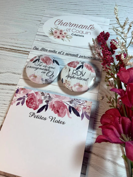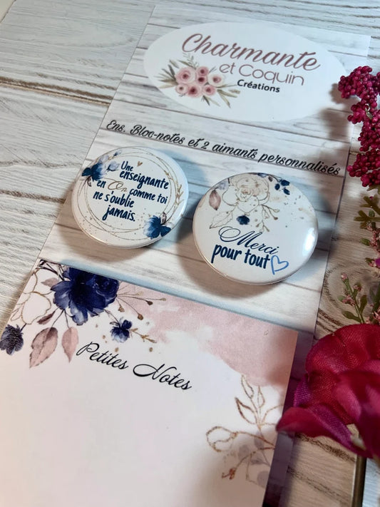 Ensemble bloc notes et 3 aimants personnalisés, cadeau pour enseignante, cadeau remerciement enseignante