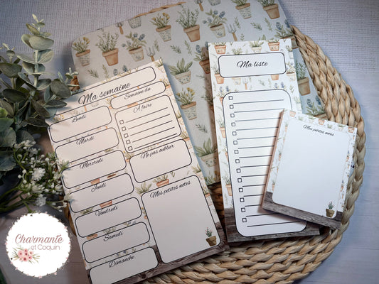 Ensemble de planification hebdomadaire avec motifs aquarelle pots de fleurs
