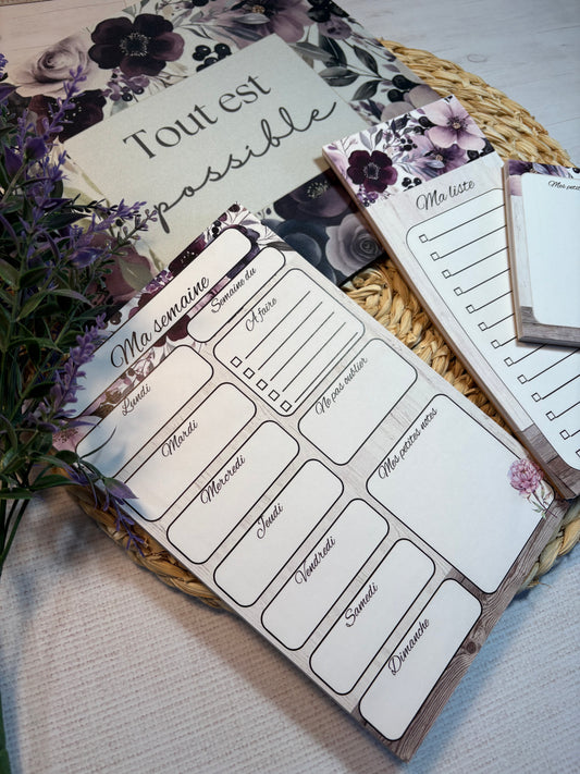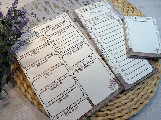 Ensemble de planification hebdomadaire avec motifs fleurs des champs