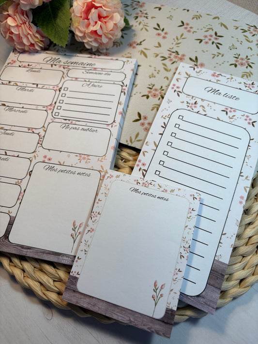 Ensemble de notes assortie sur le thème petites fleurs délicates