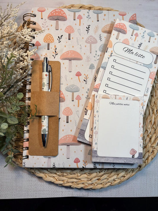 Ensemble de notes assortie sur le thème petits champignons aux couleurs d'automne