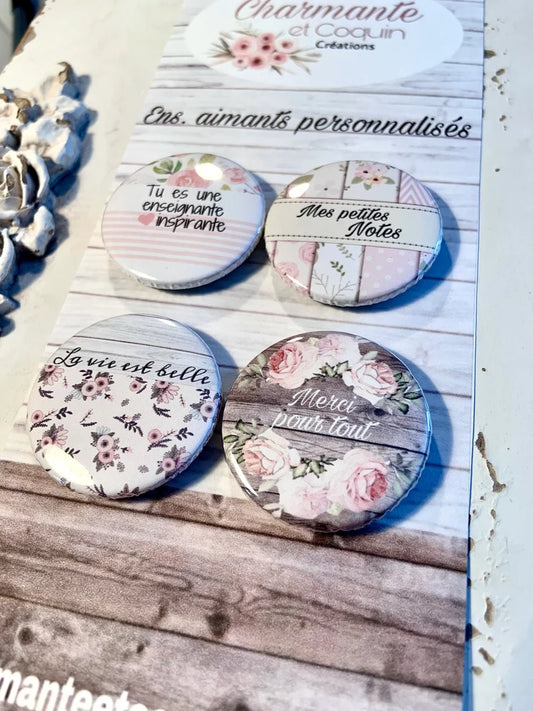 Ensemble de 4 aimants personnalisés pour enseignante , cadeau remerciement enseignante