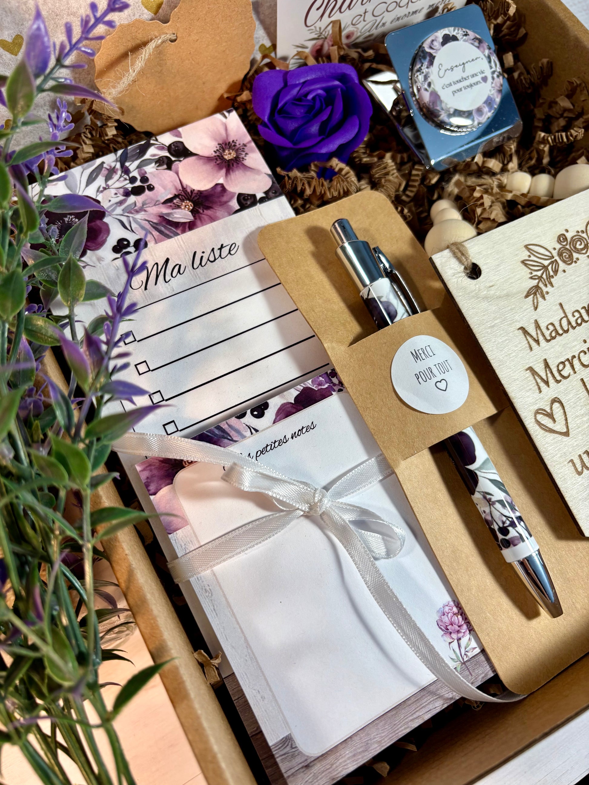Une magnifique boîte cadeau personnalisée remplie d’attentions soigneusement choisies, parfaite pour dire merci du fond du cœur à celle qui fait une différence chaque jour.
