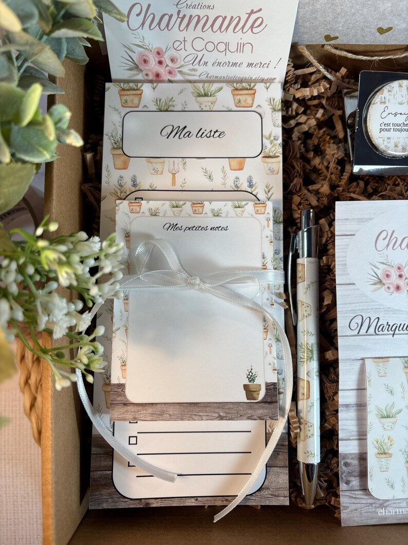 Un joli ensemble de deux bloc notes avec motif aquarelle pot de fleurs. Le bloc note ma liste est aimanté . Comprend 52 pages chacun.