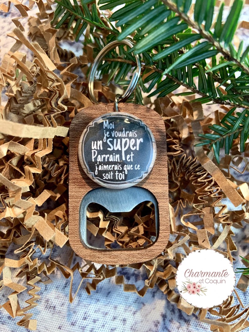*Un porte clés ouvre bouteille en bois avec une jolie citation personnalisée.