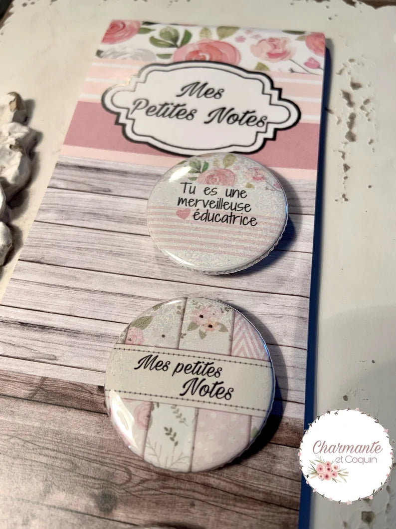 Ensemble bloc notes et 3 aimants personnalisés, cadeau pour éducatrice, cadeau remerciement éducatrice