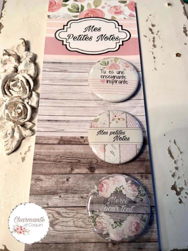 Ensemble bloc notes et 3 aimants personnalisés, cadeau pour enseignante, cadeau remerciement enseignante