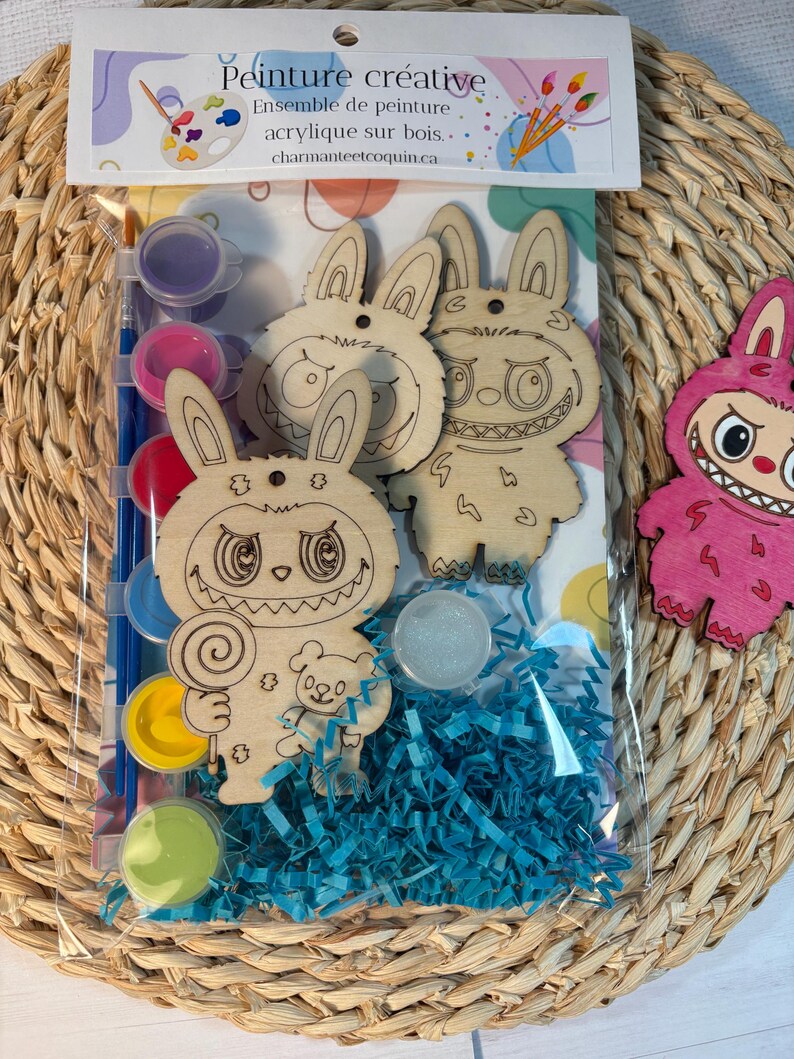 Ensemble créatif peinture acrylique sur bois pour enfants thème Labubu