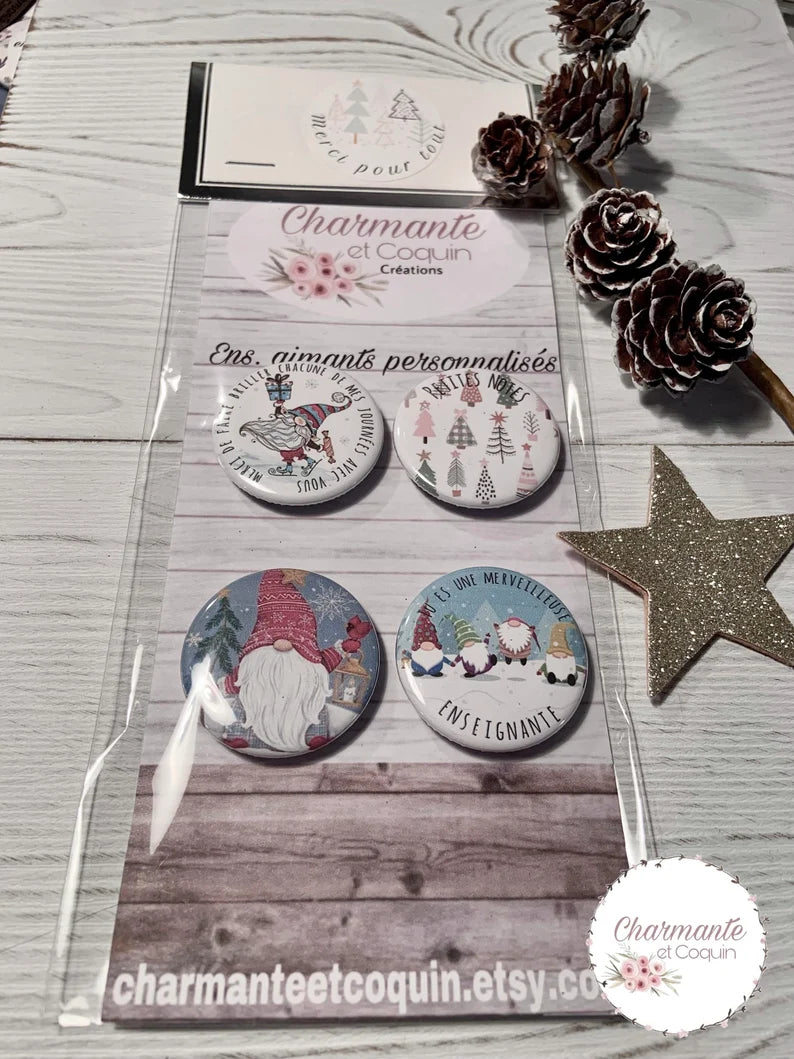 Ensemble de 4 aimants personnalisés , cadeau pour enseignante.