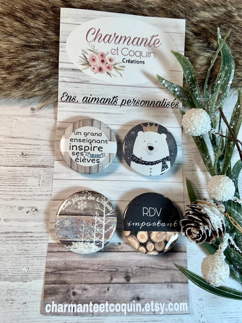 Ensemble de 4 aimants personnalisés , cadeau pour enseignant.