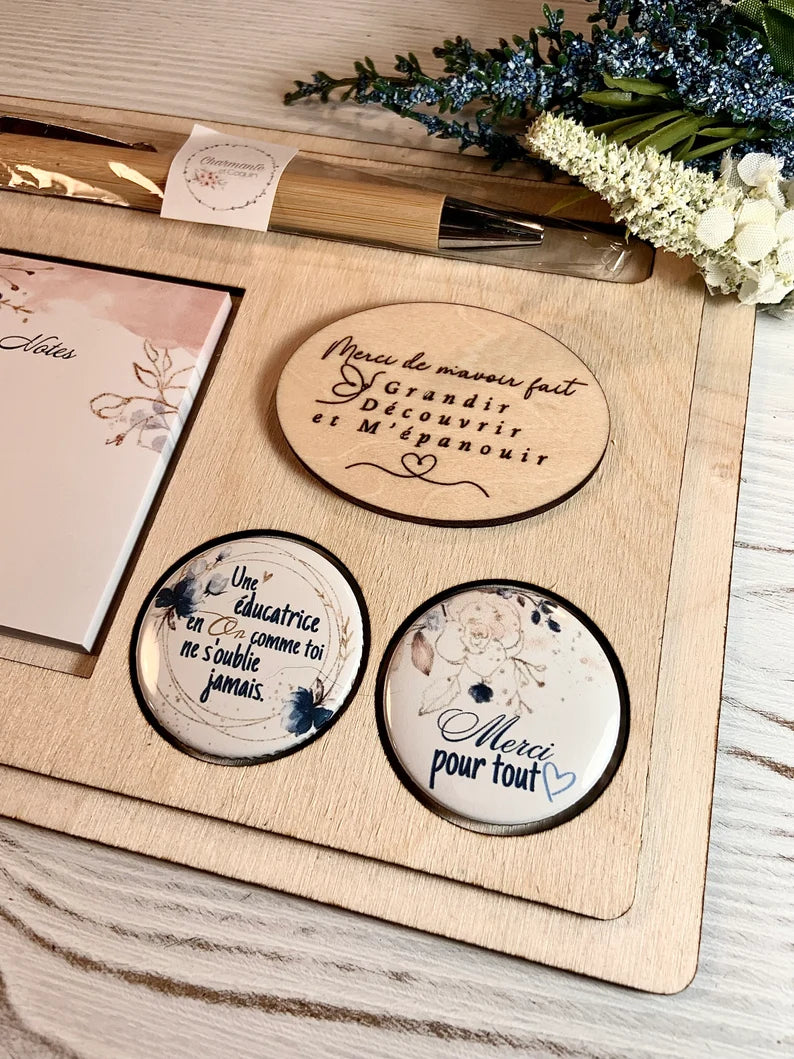 d'aimants personnalisés! Une belle idée de cadeau pour l'éducatrice de votre enfant. Cela fera magnifique sur son bureau de travail mais également très pratique !! Un aimant peut également être personnalisé avec une petite citation de votre choix ! Un cadeau plus que parfait qui fera grand plaisir de recevoir.