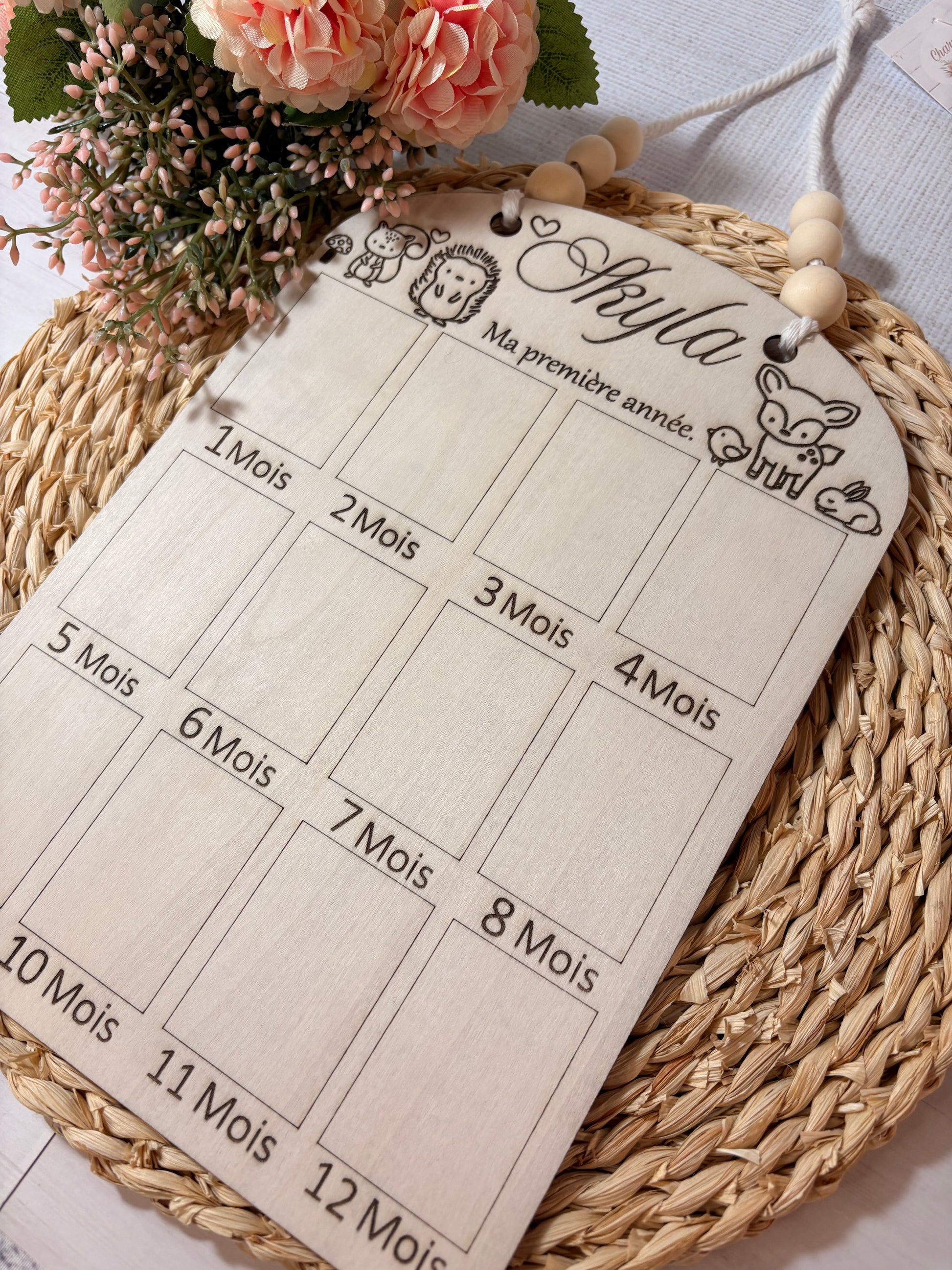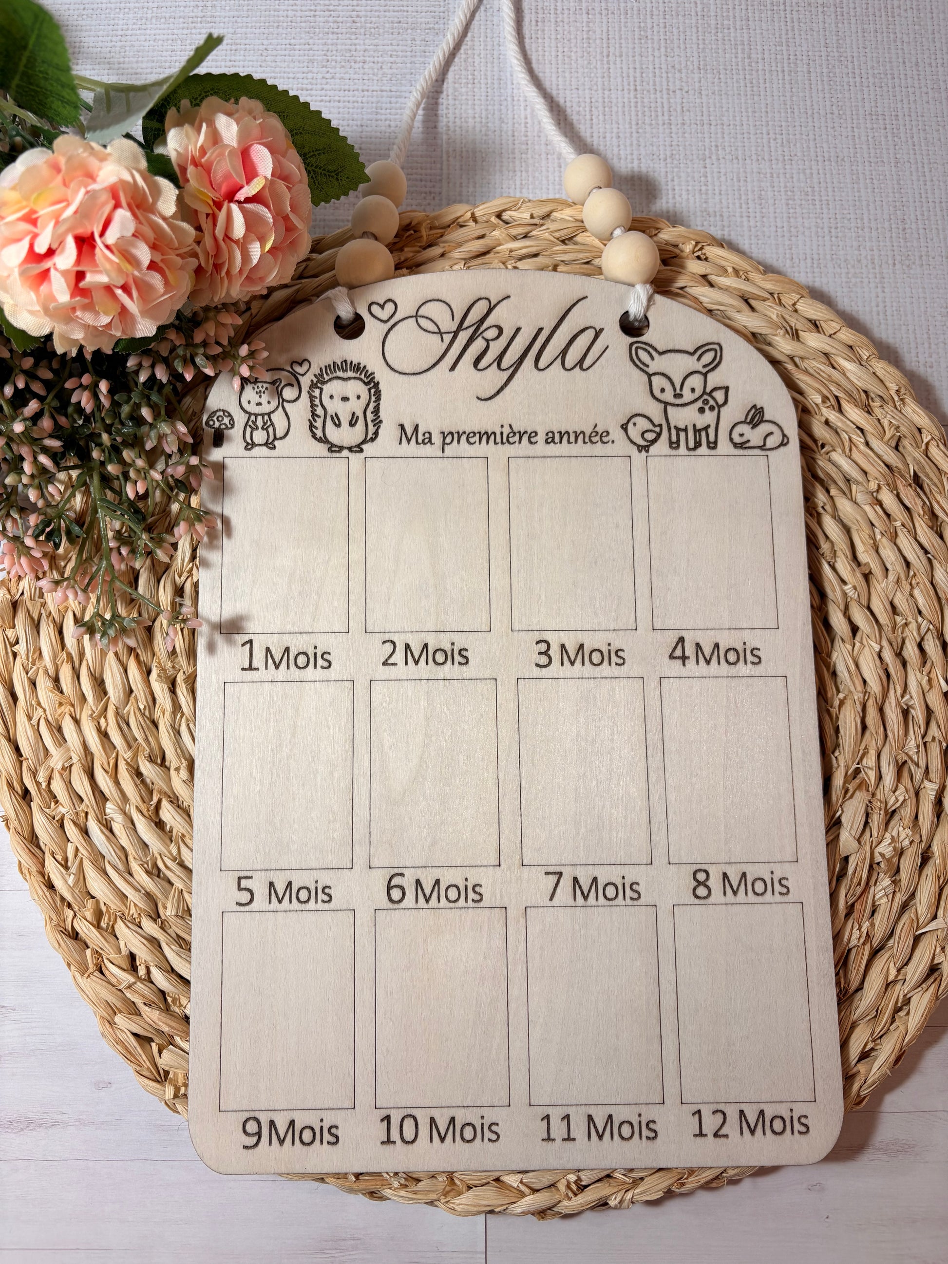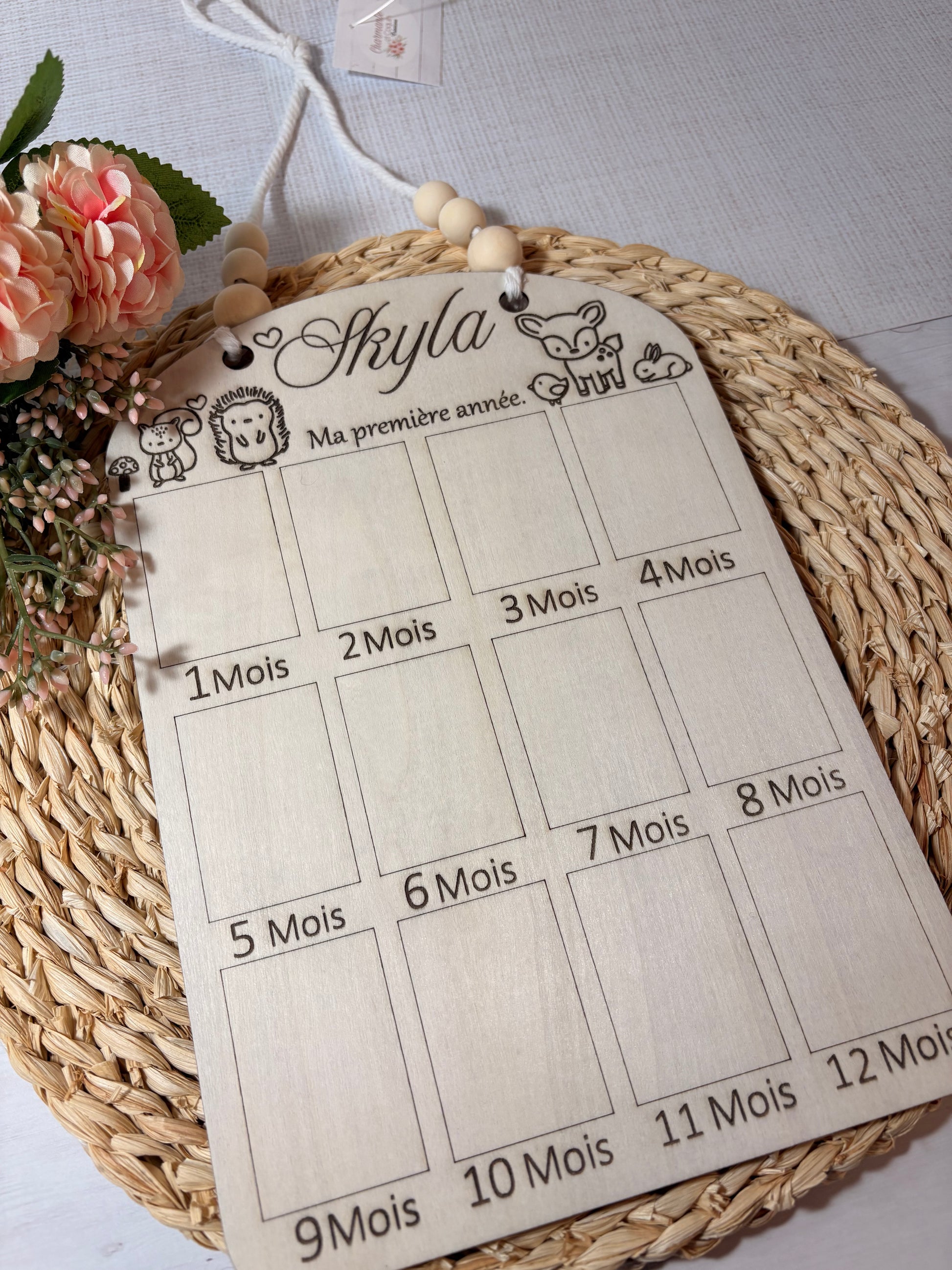 Cadre photo en bois personnalisé pour bébé , ma première année.