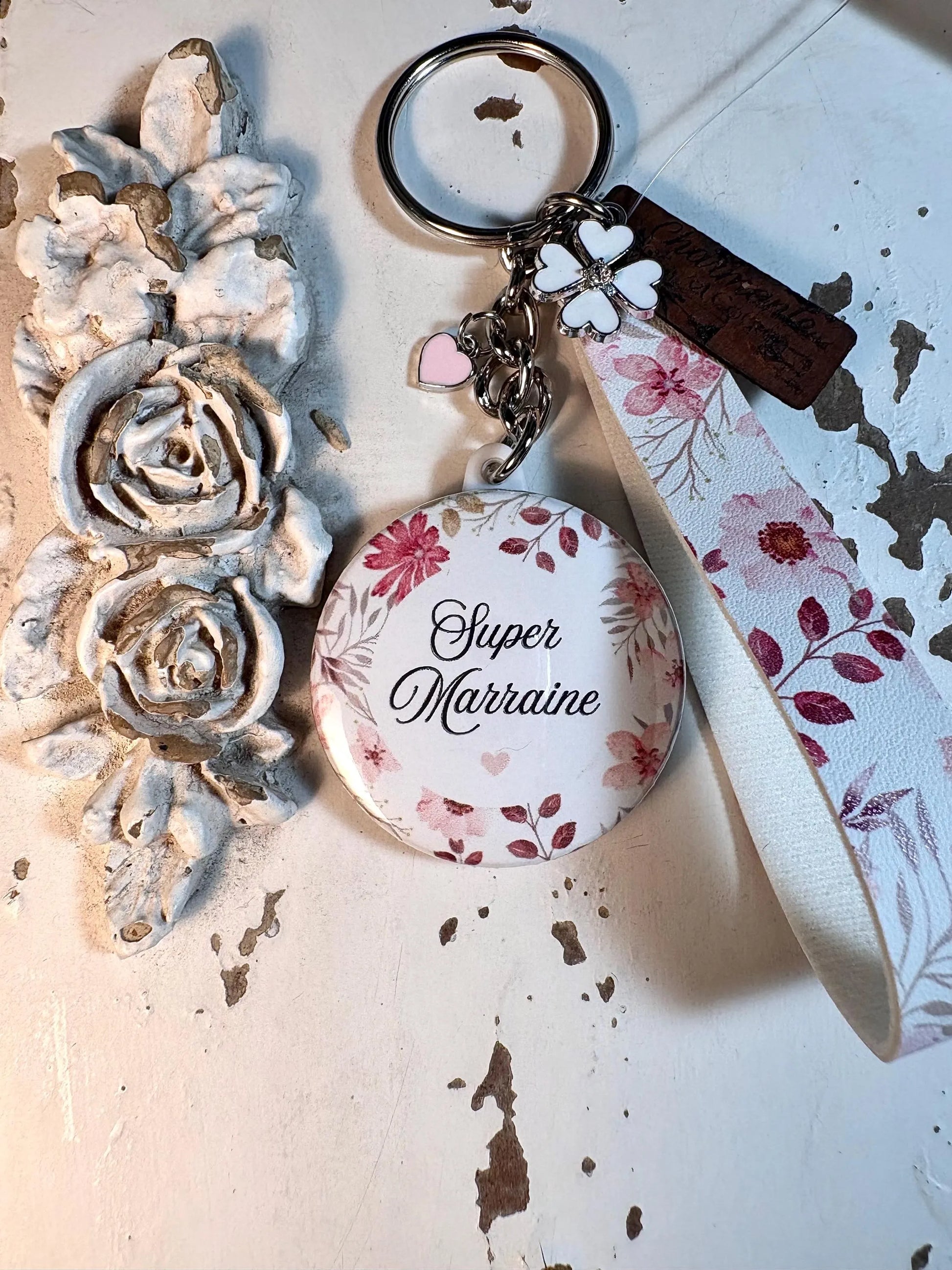 Un magnifique porte clés avec un message inscrit pour annoncer à une personne chère qu'elle sera la marraine de votre petit trésor!
