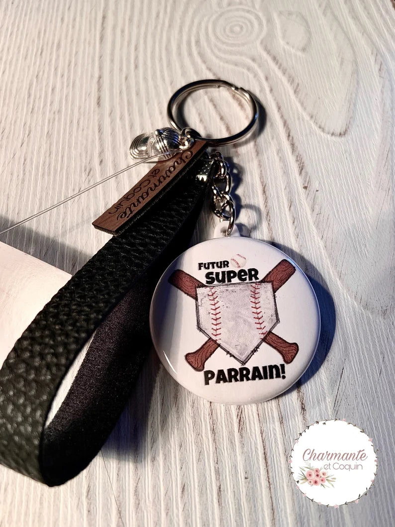 Un magnifique porte clés avec un message inscrit pour annoncer à une personne chère qu’elle sera le parrain de votre petit trésor!