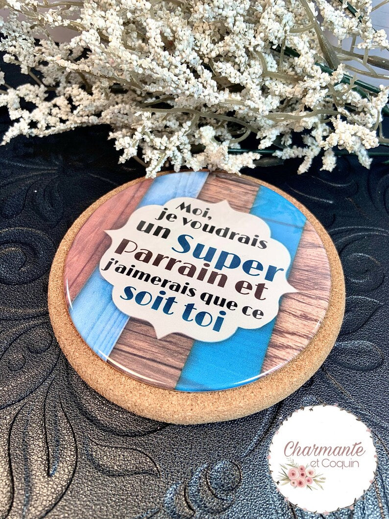 Sous verre personnalisé , cadeau demande parrain