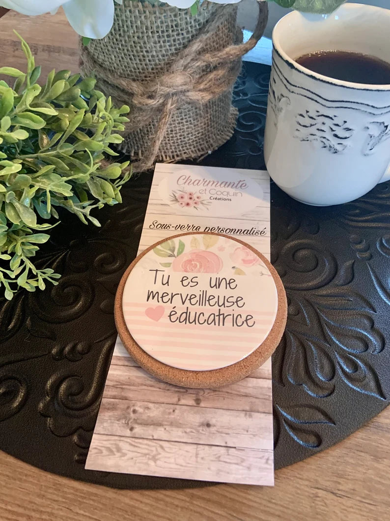 Sous-verre personnalisé cadeau pour éducatrices, cadeau remerciement