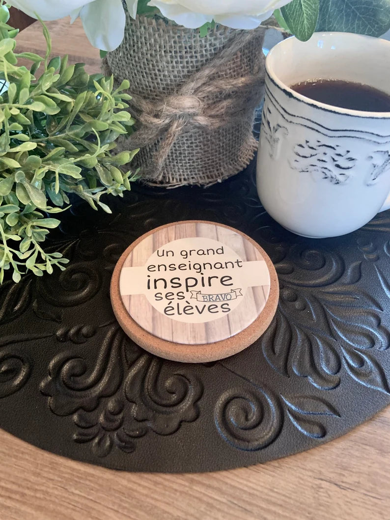 Le sous-verre avec citation et motif personnalisé est une excellente idée